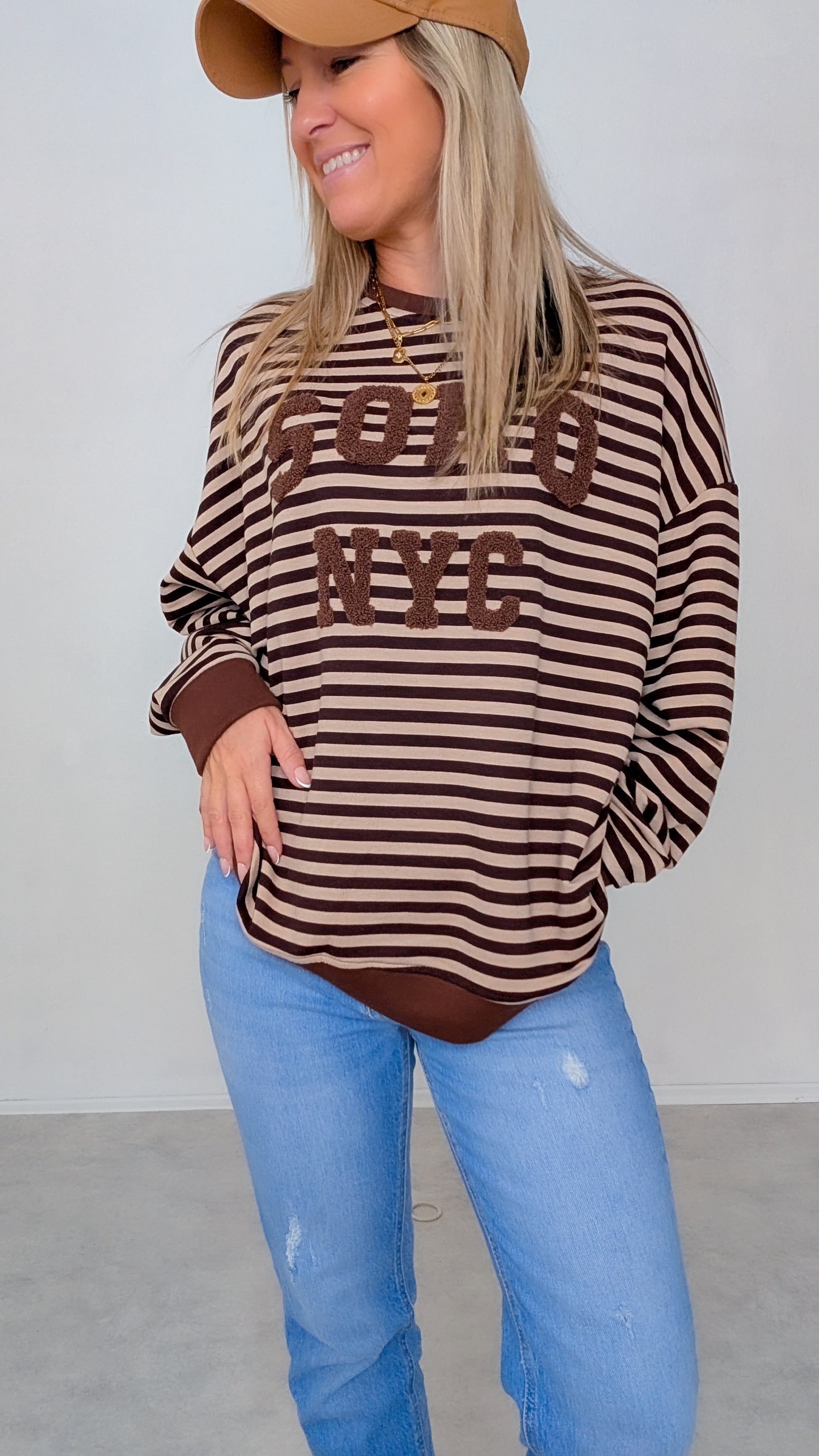 Pullover braun beige gestreift